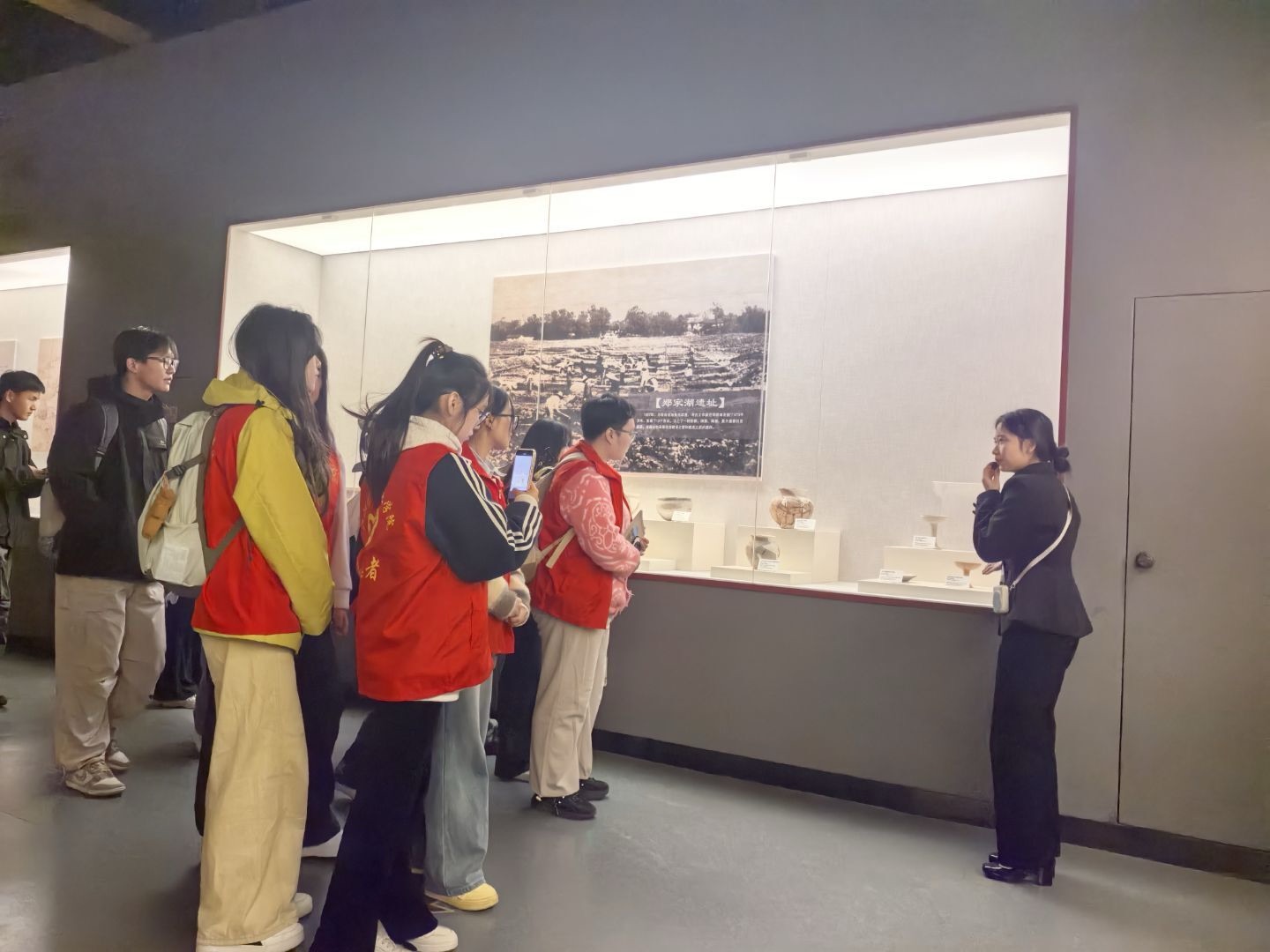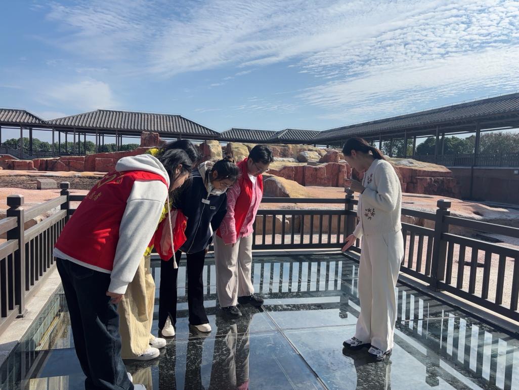 在景区管理观察环节,大家细致记录票务系统操作流程、游览线路设计逻辑,实地考察环境卫生状况、商业配套设施与营销模式,认真梳理文创产品的种类、设计理念与特色,并不时记录工作人员的服务话术与沟通技巧。跟随景区讲解员游览核心线路时,同学们专注捕捉导览词逻辑架构、讲解节奏把控及展厅串联技巧,沉浸式感受专业讲解的魅力。