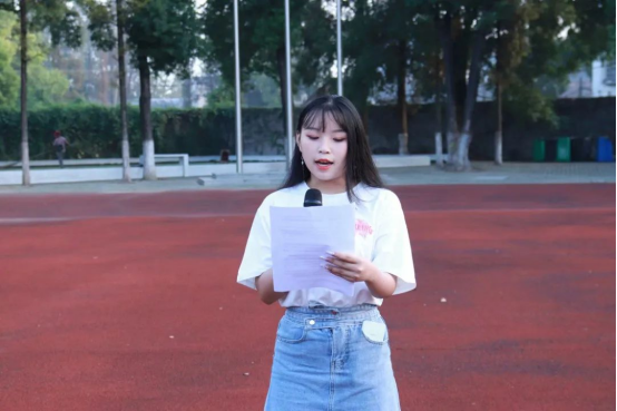 礼毕后,21级环境艺术设计专业张菊虹同学首先进行国旗下的演讲。张菊虹与环艺专业其他几名同学在2023年4月代表江汉艺术职业学院参加“中银杯”园林景观赛,并斩获高职组一等奖和二等奖。演讲中她分享了自己和团队在比赛中的感悟以及从参赛到夺冠的过程,以此激励全院其他同学,争取得到更多的成果和进步。