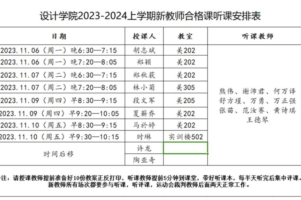 教师成长是学校发展的源动力,课堂实践是教师成长的主阵地。为充分发挥老教师传、帮、带的积极作用,推进新教师的培养工作,加强师资队伍建设,11月6日至10日,设计学院开展了新教师“合格课”试讲活动。