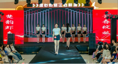 近日,江汉艺术职业学院“楚韵虾乡青春绽放”第七届校园时装模特大赛在潜江万达广场圆满落幕。校党委书记李飞、副校长廖江涛、院务委员周红军等校领导出席活动。学校相关职能部门负责人、师生代表共300 余人齐聚现场观看比赛。活动同步官方视频号、抖音号直播,在线观看量突破万人。