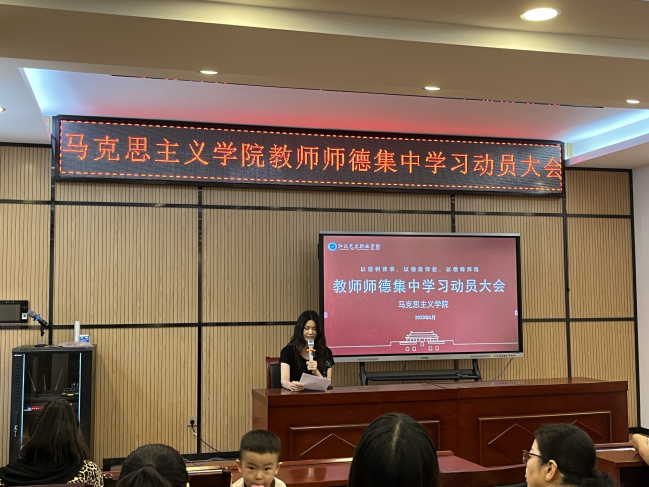 为深入学习贯彻习近平新时代中国特色社会主义思想,根据教育部有关师德集中学习教育统一部署的工作要求,马克思主义学院与公共课部副院长李其耘组织教师学习新时代教师职业行为十项准则等系列师德规范,列举了典型案例,围绕十项准则开展学习讨论,引导全院教师全面理解和准确把握其内涵要义,提升职业规范意识。