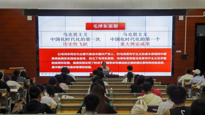 29日,学校校长程伦嵩深入课堂给学生上了一堂题为《毛泽东思想及其历史地位》的思政课。马克思主义学院院长夏少君以及思政课教师观摩学习。