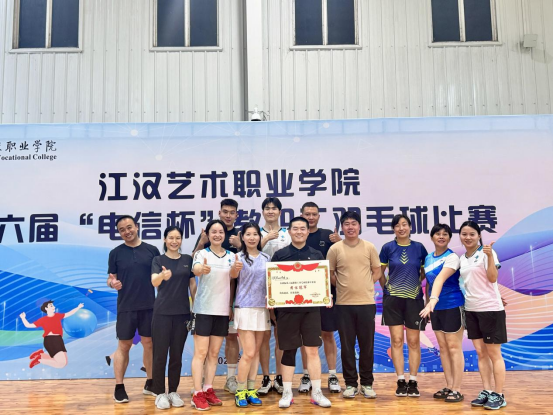 江汉艺术职业学院第六届教职工羽毛球比赛于近日圆满落幕,马克思主义学院代表队凭借精湛的球技和顽强拼搏的精神,最终从全校6支联队中脱颖而出,斩获团体冠军的殊荣。
