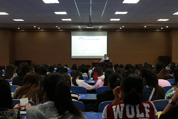活动开始主持人邓柳莲向我们介绍此次活动主题及活动宣讲人---超星杯移动阅读负责人项目经理熊宇老师,为大家进行赛前培训。熊宇老师通过PPT向我们展示此次活动的两大主题,一是读秀,所谓读秀就是类似百度的一种读书搜索引擎,它的作用非常广泛,它能够找到我们想搜的任何一本书,并且可以免费下载浏览书籍,而且知识面十分全面,不仅有书刊,还有大量的学习视频可以观看。二是移动图书馆,通过登录读秀可以在手机上随时看书,还可以通过手机在图书馆续借书籍,十分方便。活动在同学们对熊宇老师的提问中进入尾声,现场气氛达到高潮。