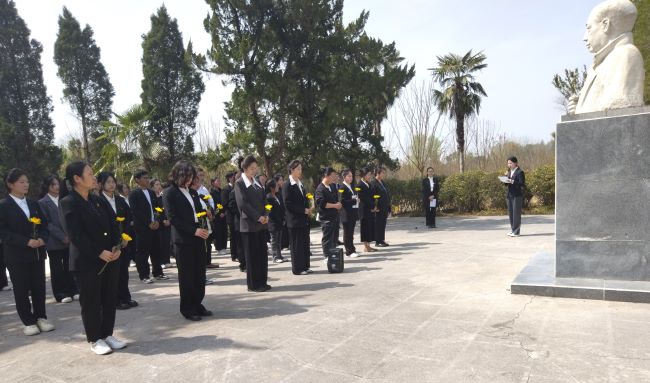 (通讯员 杨柳 肖溢宁)4月3日下午,江汉艺术职业学院学前教育学院组织师生党员赴潜江烈士陵园、曹禺陵园、曹禺纪念馆等地,开展“祭拜英烈 致敬先贤”祭扫活动。