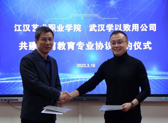 3月16日上午,我校学前教育学院与武汉学以致用教育科技有限公司签订学前教育专业共建协议。学校副校长廖江涛、武汉学以致用公司负责人万立博,学前教育学院院长徐丽蓉和部分专业教师参加活动。