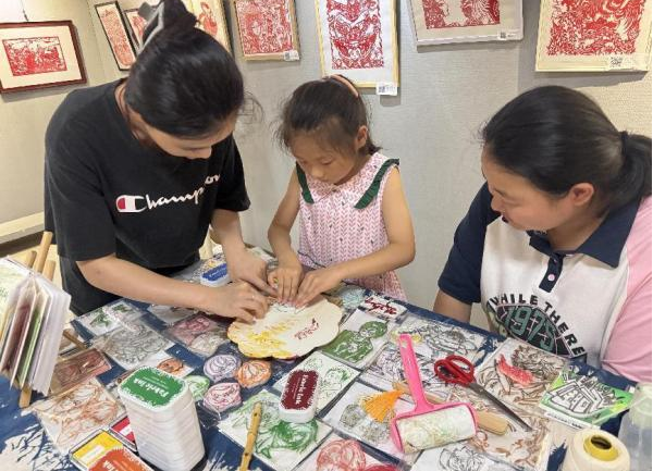 展览汇聚了1000余件学生精心制作的手工作品。除了常见的剪纸、衍纸、纸浆画和布艺作品,也包括极具民族特色的簪花、皮影、锡纸银饰、扎染以及泥塑等内容。这些作品巧妙融入了非遗元素,展现了传统与现代的完美融合。