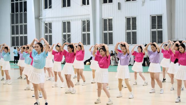 各班队员们身着整齐的服装,踏着动感的节拍,浑身焕发着激情、绽放着青春。多元化的表演,让人目不暇接。