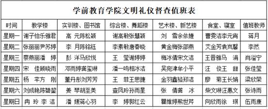 2、成立文明礼仪督查队,安排值班表;
