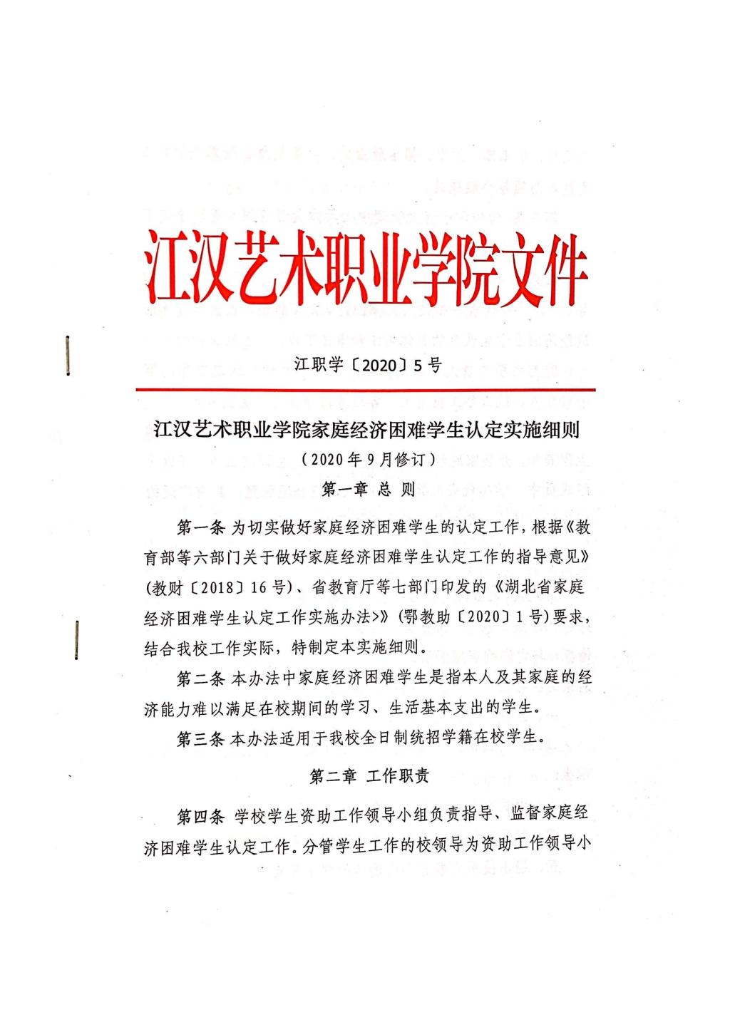 江汉艺术职业学院家庭经济困难学生认定实施细则
