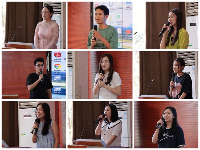 李璐老师从备赛历程、赛项解读和感想体会等方面为大家作精彩分享。新入职教师分别上台作自我介绍。