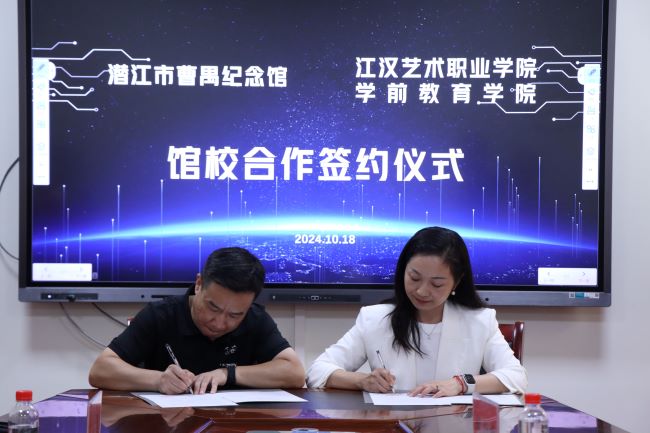(通讯员 何艳萍)10月18日下午,江汉艺术职业学院学前教育学院与市曹禺纪念馆在学校综合楼二号会议室,举行馆校合作签约仪式。学前教育学院院长徐丽蓉、市曹禺纪念馆馆长秦洪卫率双方人员出席活动。市文化事业发展中心副主任陈群莅临指导。