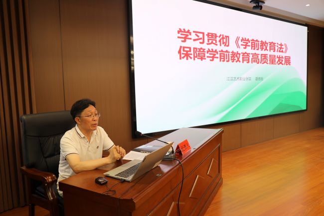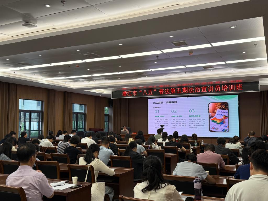 5月8日,潜江市“八五”普法第五期法治宣讲员培训班开班。江汉艺术职业学院谭德刚副教授应市司法局邀请,为全市法治宣讲员作《学前教育法》专题培训。