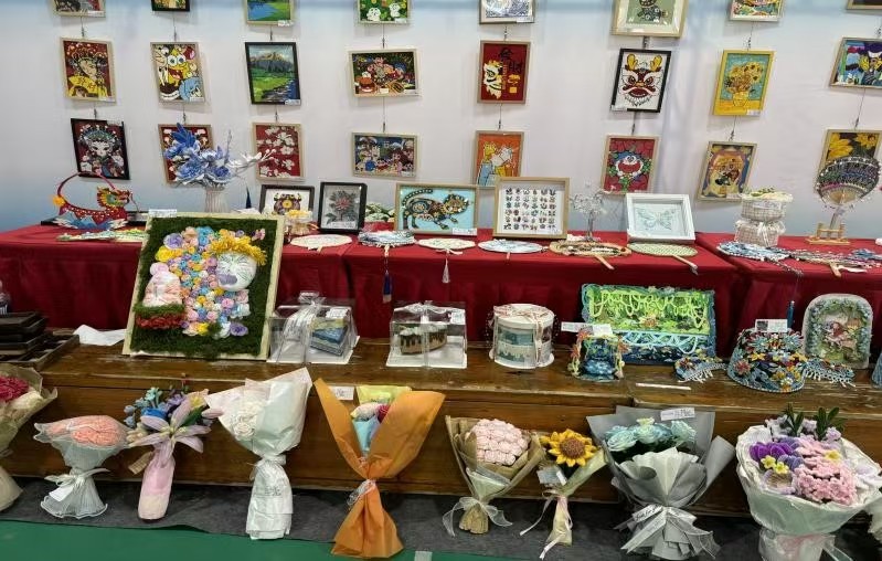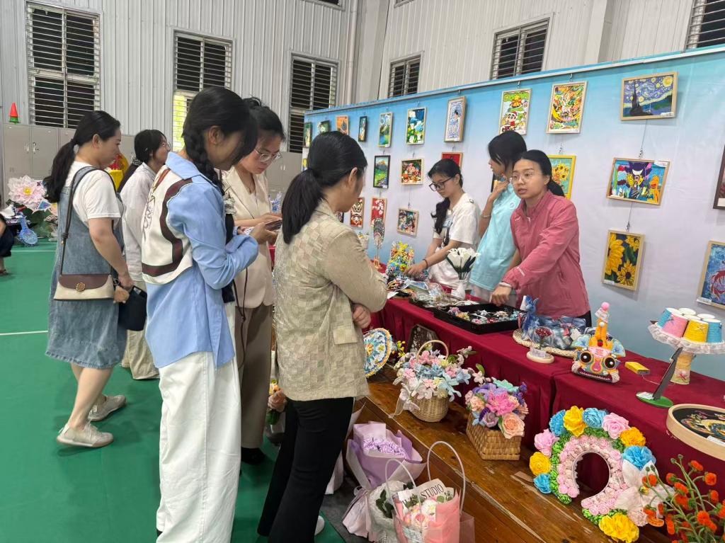 步入展区,从毕业打卡区开始,参观者便置身于一个充满童趣的艺术世界。色彩斑斓的纸艺花卉栩栩如生,灵动的布艺玩偶憨态可掬,利用环保材料制作的教具兼具创意与实用价值。每件作品都展现了学生们扎实的手工技能、丰富的想象力,以及对学前教育事业的深刻理解。