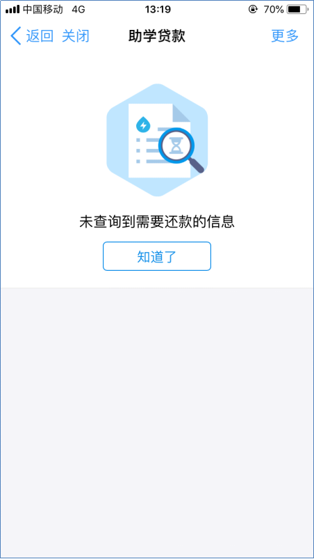 5. 如无还款信息则显示以下信息,不需进行还款操作