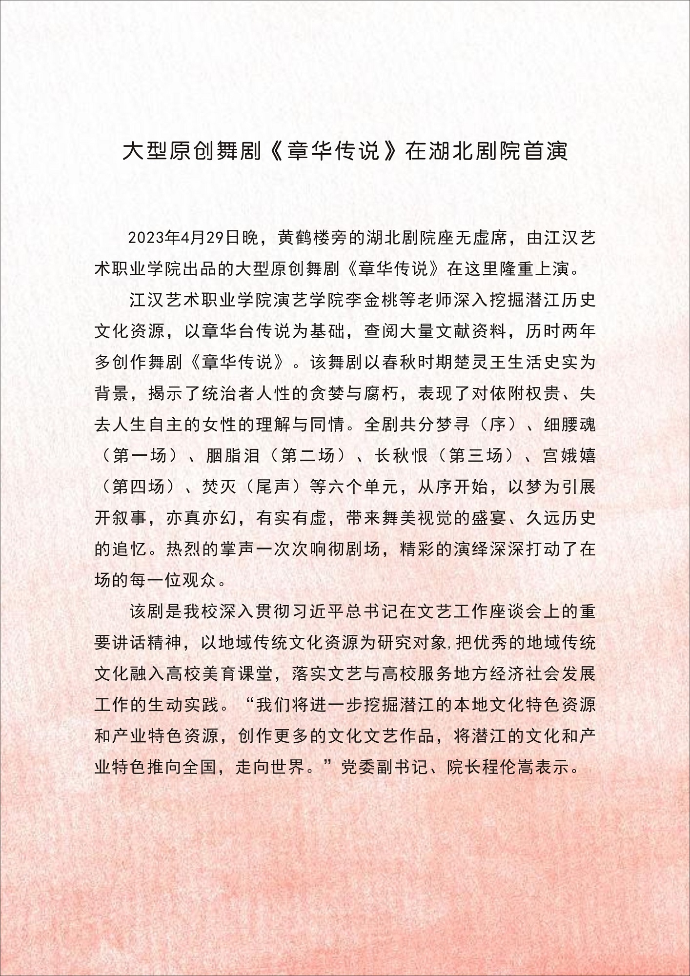 2023年第3期封二、封三:我校大型原创舞剧《章华传说》在湖北剧院首演