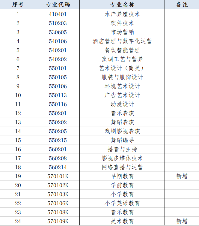 专业设置、当年新增专业、停招专业名单