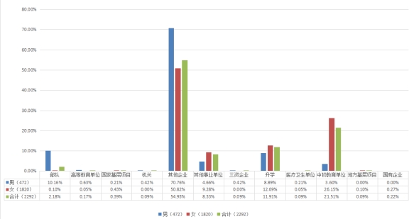 毕业总人数的20.47%;女性毕业生1896人,占毕业总人数的79.53%,男女人数比为1∶3.89 ,具体如下表所示: