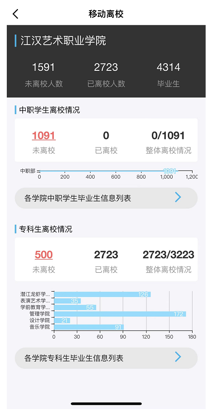 移动离校系统不仅打通了毕业离校相关的各个部门,还实现了部分工作转移到线上,这样一来,各个部门的工作不再相互区隔,而是联动起来,学生需要跑的部门少了,老师需要做的工作也少了,相关的通知、流程都在这个系统上走,运用数据手段、互联网手段很大的程度上提升校园的智慧化水平。