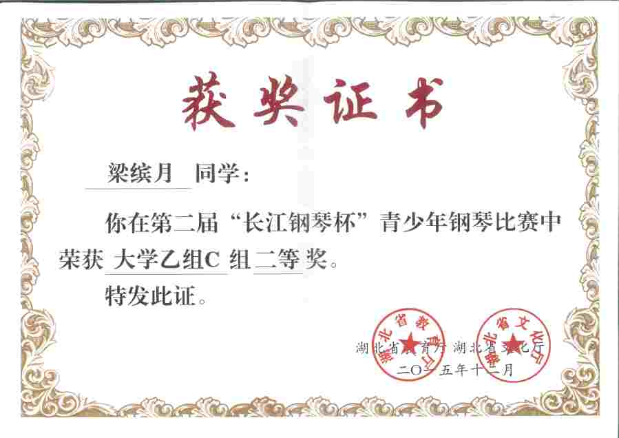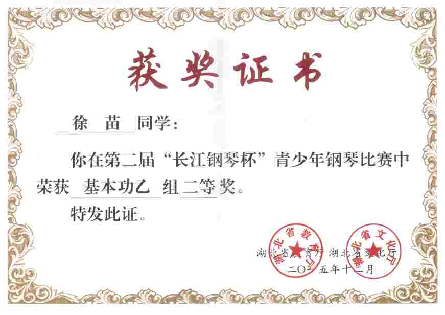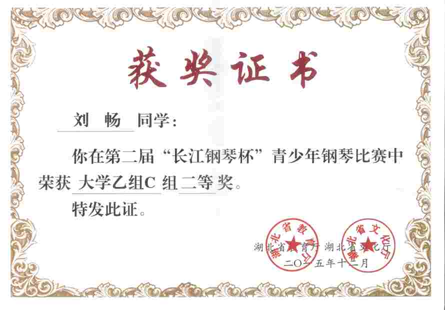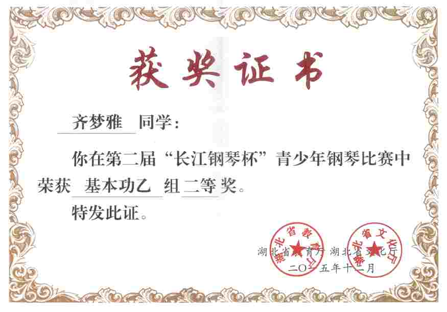 上一条:2015“长江钢琴杯”青少年钢琴比赛获奖证书2
